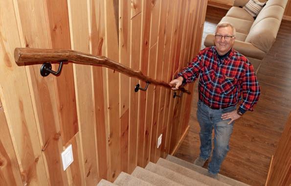 A log fireplace in the living room generates warmth as well. All of the stonework was done by Joshua Carlson of Menahga. He’s also building a retaining wall.