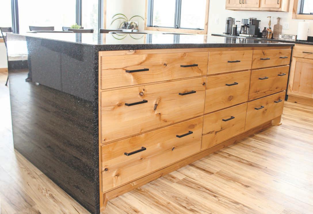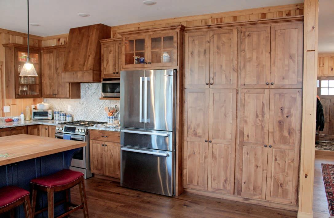 They chose knotty alder for all doors, trim and cabinets in the home.