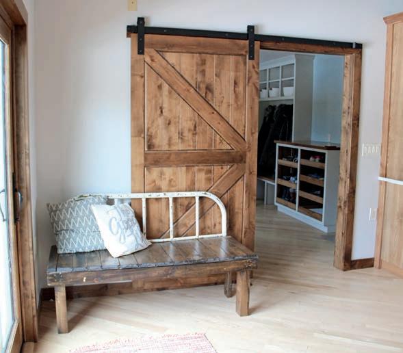 Now, the freshly painted and remodeled laundry/mudroom can be entered through a new garage door or via a barn-style, sliding door from the dining area.