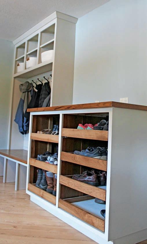 shelving, drawers, hooks and nooks for coats, shoes and other outdoors gear.