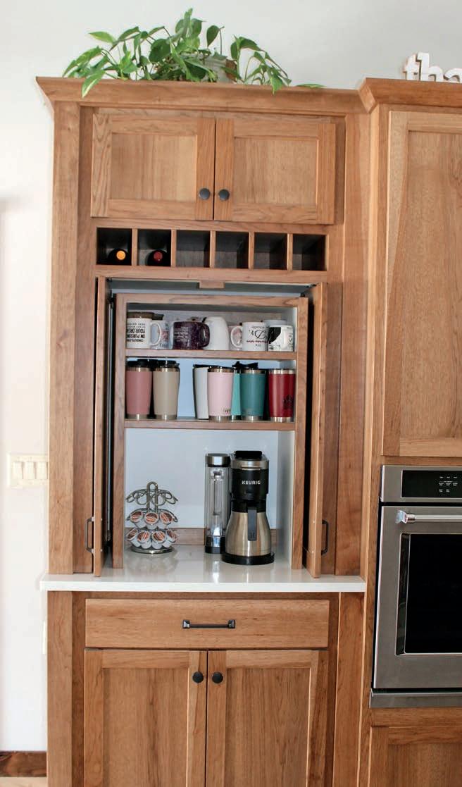 Hickory cabinets throughout the kitchen offer plentiful storage space. They were purchased from Eischens Wood Products Inc.