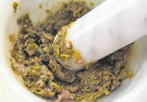 Use a mortar and pestle, or a wooden spoon and a small bowl, to mash the capers and anchovy together until well combined and a paste forms; set aside.