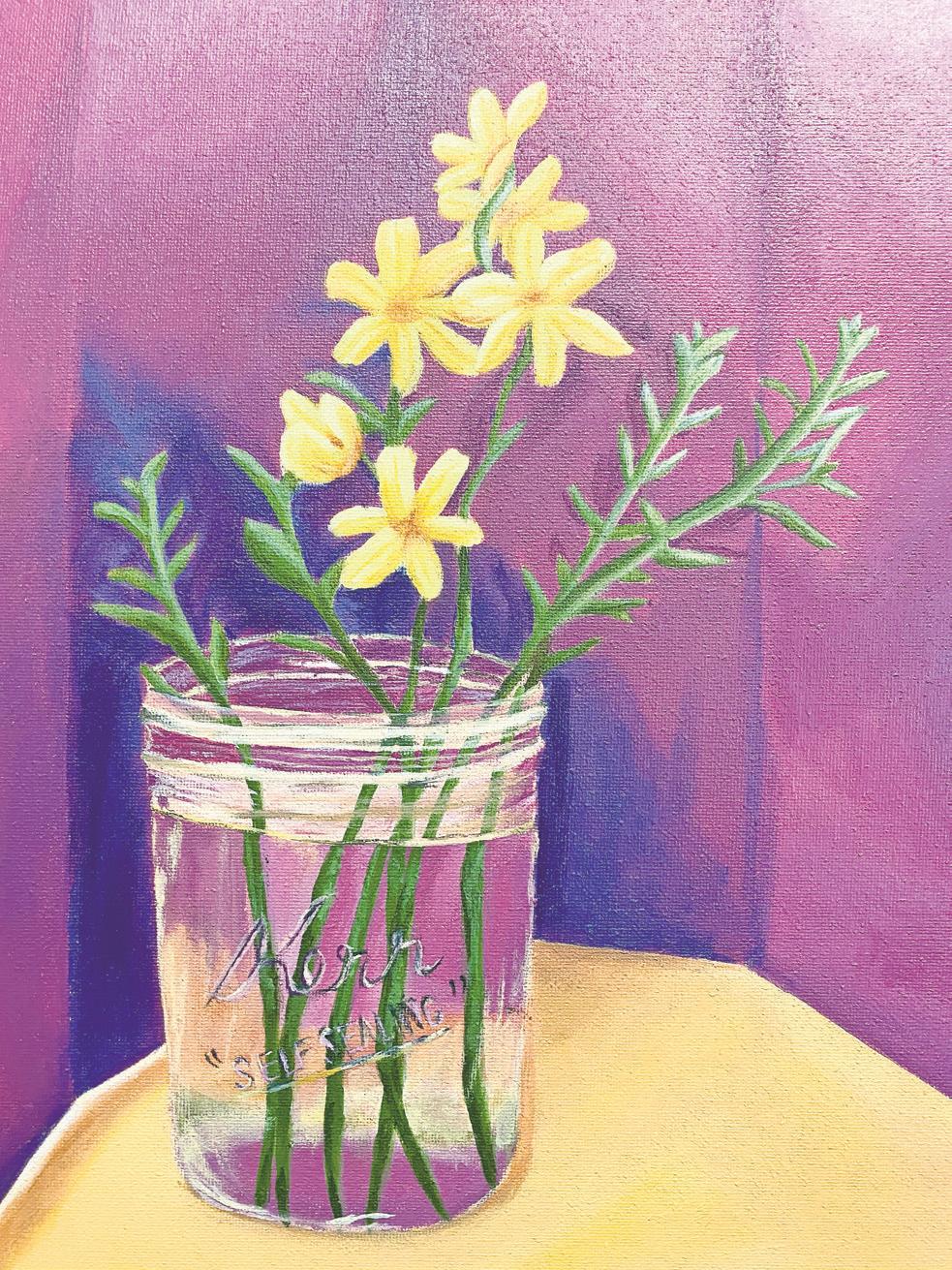 Ava Etzler, another MHS senior, crafted “Floral Still Life” with acrylic paint.