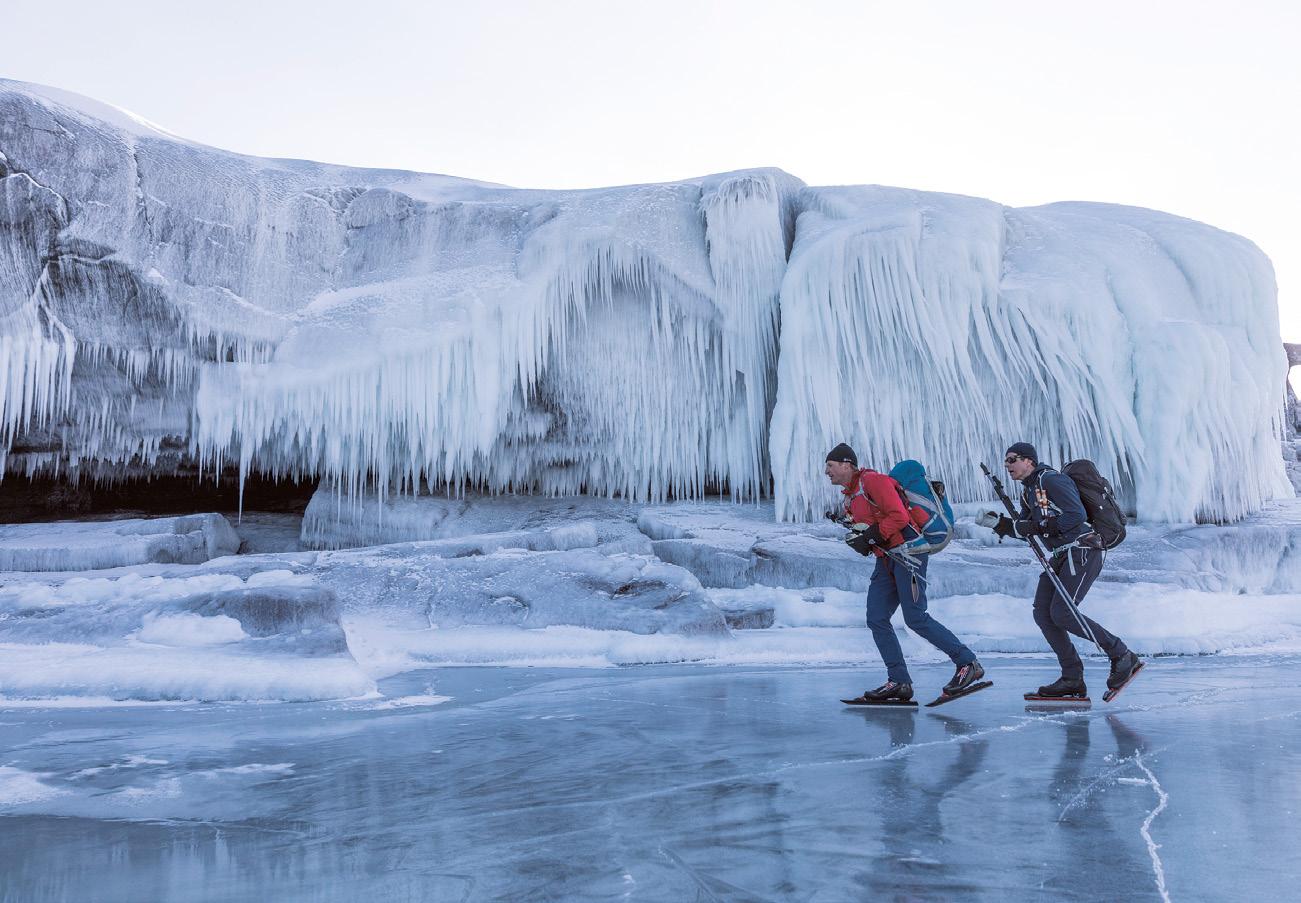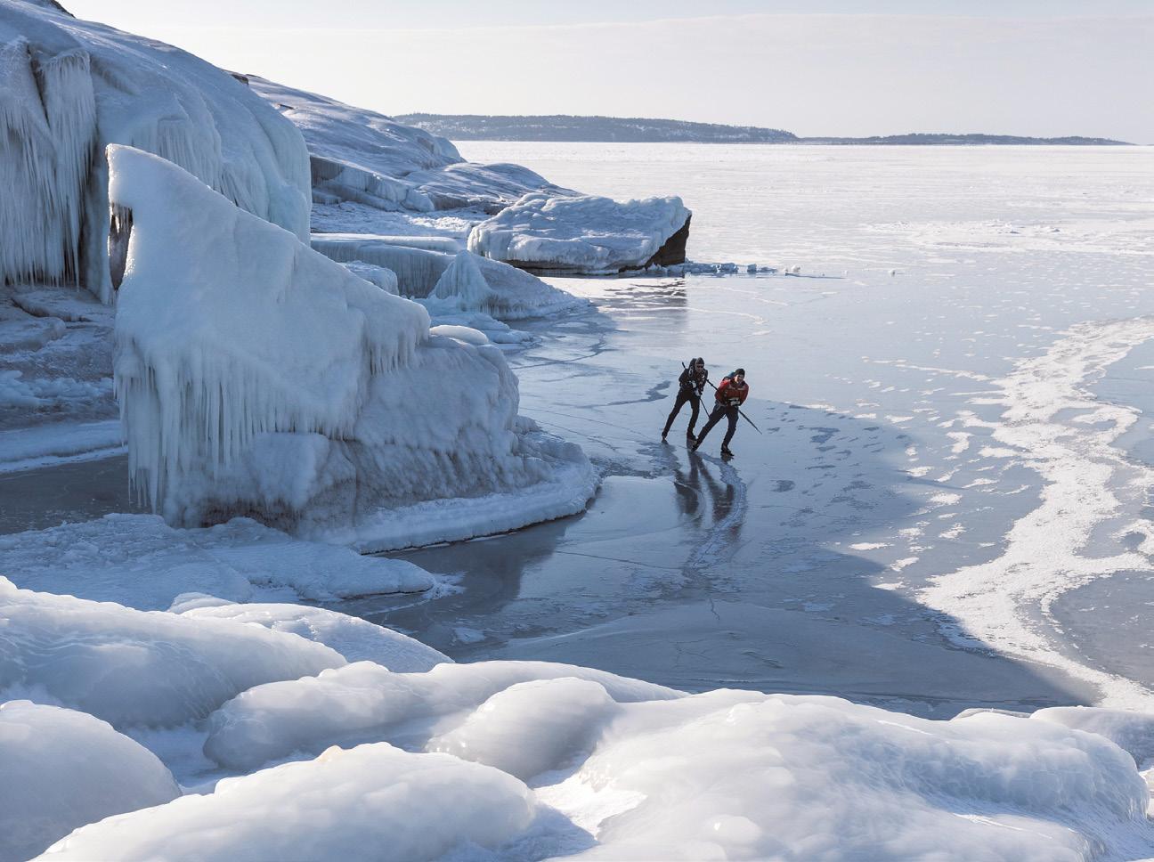 26 Itämeren lakeuksilla Ahvenanmaan saaristo vetää puoleensa seikkailunnälkäisiä retkiluistelijoita.