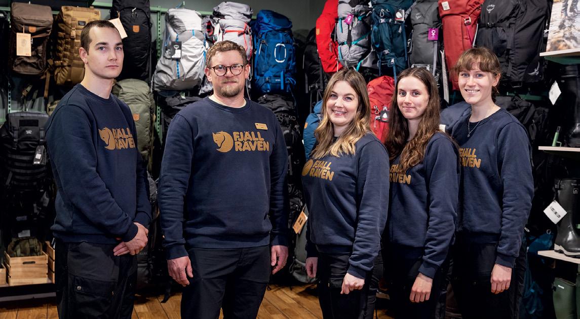 Partioaitan asiakaskunta pitää henkilökunnan hyvällä tavalla varpaillaan. Myymälä palvelee niin tosiretkeilijöitä kuin turistejakin.TEKSTI TAINA AHTELA KUVA MILLA KESKIPOIKELA Kuvassa Roope, myymäläpäällikkö Jani, Elina, Alisa ja Sanni Rovaniemen Partioaitasta. TERVETULOA MYYMÄLÄÄMME!
