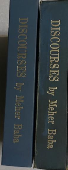 Complete bound set of 1st printing of Meher Baba’s discourses 3 volume set. Two bound volumes.