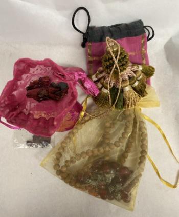 SN28 Flower dust “tomb dust” in small glass bottle with white lid, inside the same bag with the label. [I’m guessing this is from when Baba’s body was in the Samadhi.]