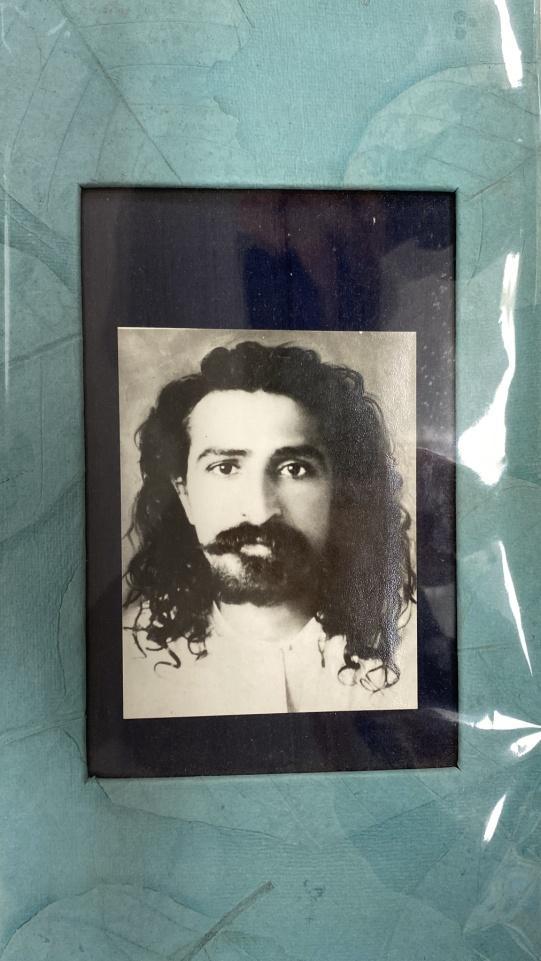 Meher Baba’s Hair – thread of Baba’s hair placed on cloth image of Baba Baba image in foto frame