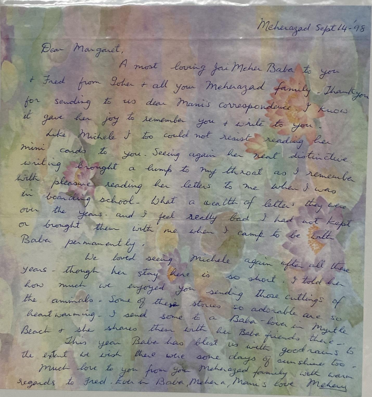 Label on bottom: Rose Goher offered to Baba last 2 weeks of her life.
