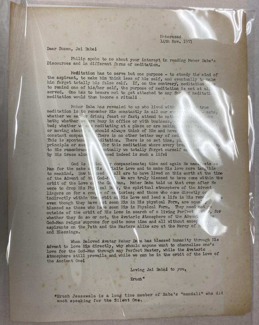 Gift to Awakener Bookstore, Archives via Jack Small and Adi Irani 1971-1972