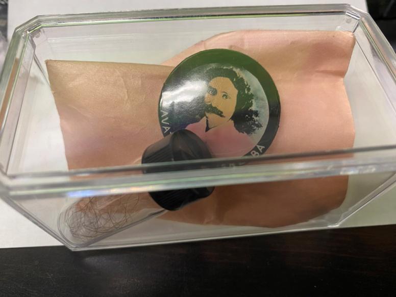 1. SN 12 Button touched by Baba, given by Mehera 1975. The button is inside a little Chanel No5 box. Also in the box is a small plastic bag containing some of Baba’s hair.
