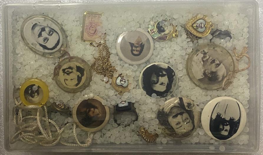 JAL Irani Baba lockets buttons he placed on Baba’s Tomb Shrine then sent the assortment to Awakener Bookstore 1972.