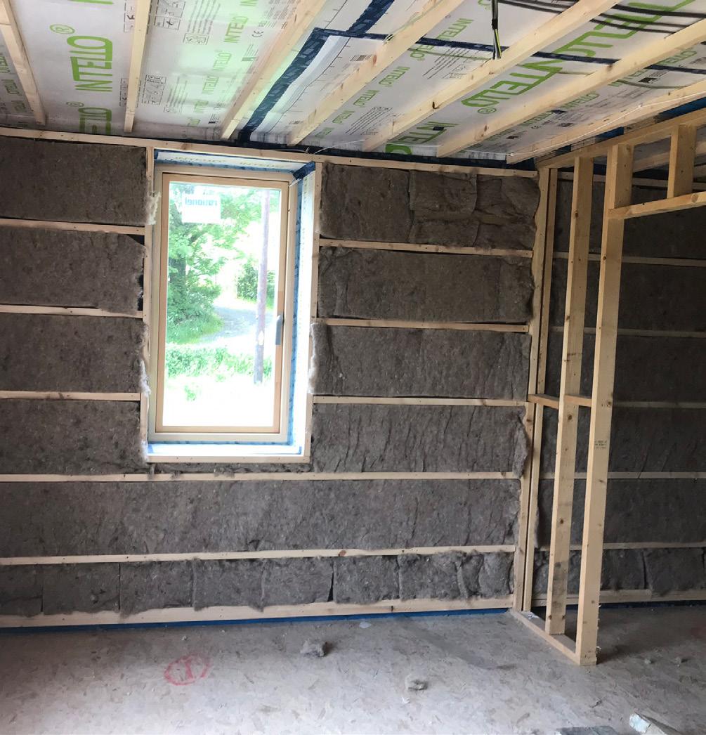 Drawing from 25 years of experience promoting airtightness and green building materials, Ecological Building Systems has developed Passive EcoWall, a system which integrates high quality, low embodied carbon, natural materials to deliver passive house performance levels. Passive EcoWall follows proven passive house principles and includes elements like Gutex woodfibre natural insulation, Finsa Superpan VapourStop airtight racking boards, and the Pro Clima Intelligent airtightness system. It can also feature alternative natural insulation options such as Indinature’s Indibreathe Flex hemp & jute insulation, and Gramitherm grass fibre insulation. Both of these products have independently verified environmental product declarations (EPDs) or life cycle assessments (LCAs), making whole life carbon assessments more straightforward.