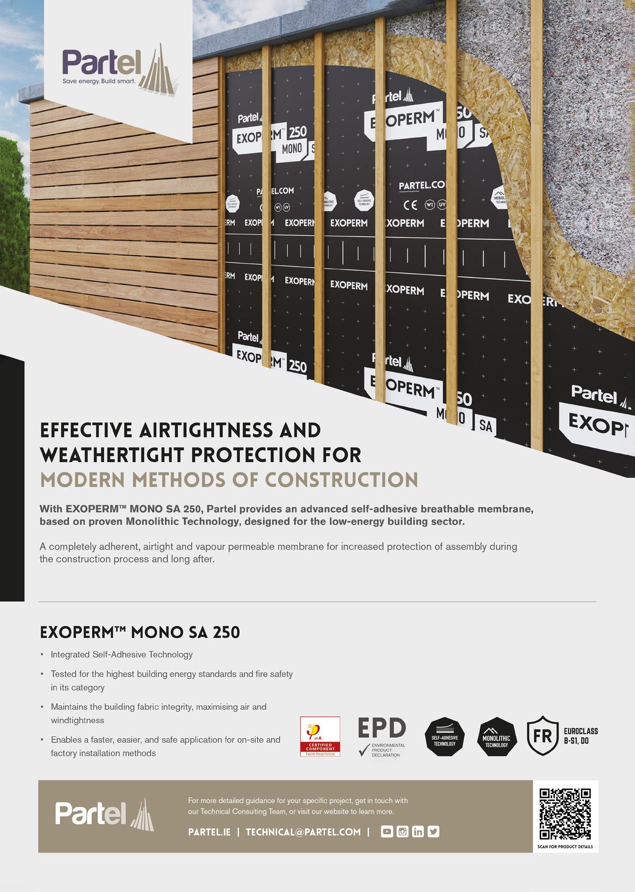 “Through these certified membranes, Partel is ensuring industry professionals can plan their projects with confidence, ensuring the delivery of necessary energy parameters for their use in passive houses and energy efficient buildings,” said Partel director Hugh Whiriskey.