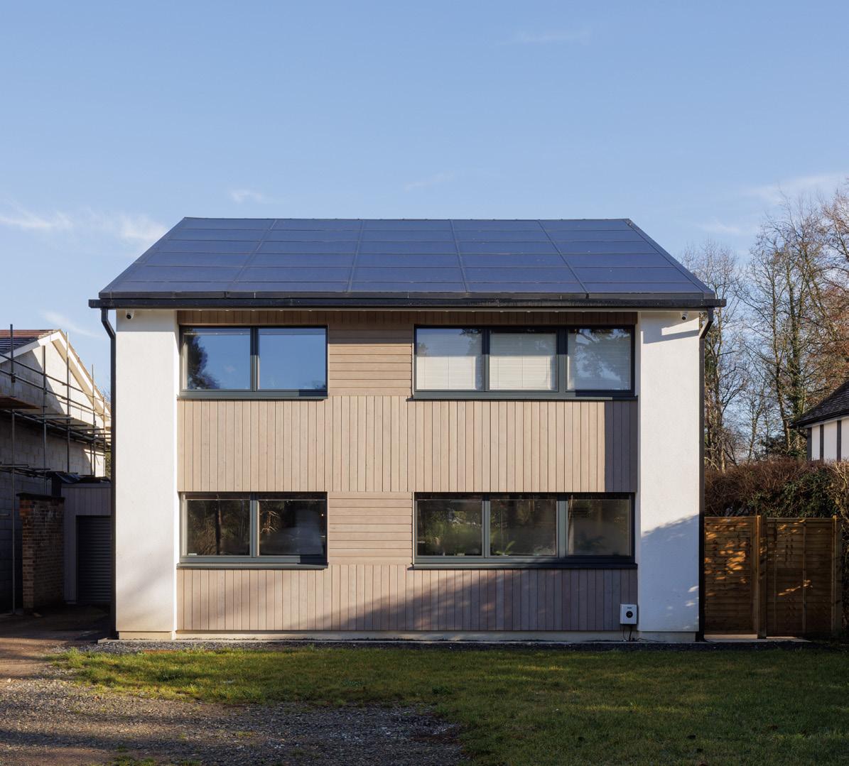 A passive house, by its nature, requires a much smaller amount of energy than a typical home, and when its heating demand is met by electricity, and you cover it in solar PV panels, you can start to see the potential for a whole new generation of passive homes that are semiindependent of the electricity grid. This is the case for Carrstone House in Bedfordshire, which generates so much solar energy it had to be registered as a power station.