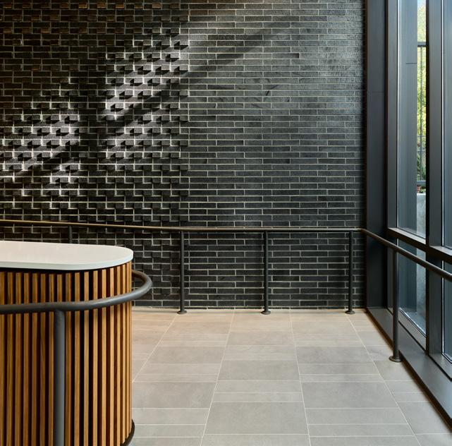integral parts of the building, such as the discreet handrails along the ramp walkway. “The large entry ramp is a way to allow users with mobility issues to enter the building in the same way as someone without mobility issues,” said Reynolds. “The idea is that the experience is shared. By including natural materials and patterns, along with access to daylight and views, it actually elevates the experience of entering the building and makes it special for everyone.”