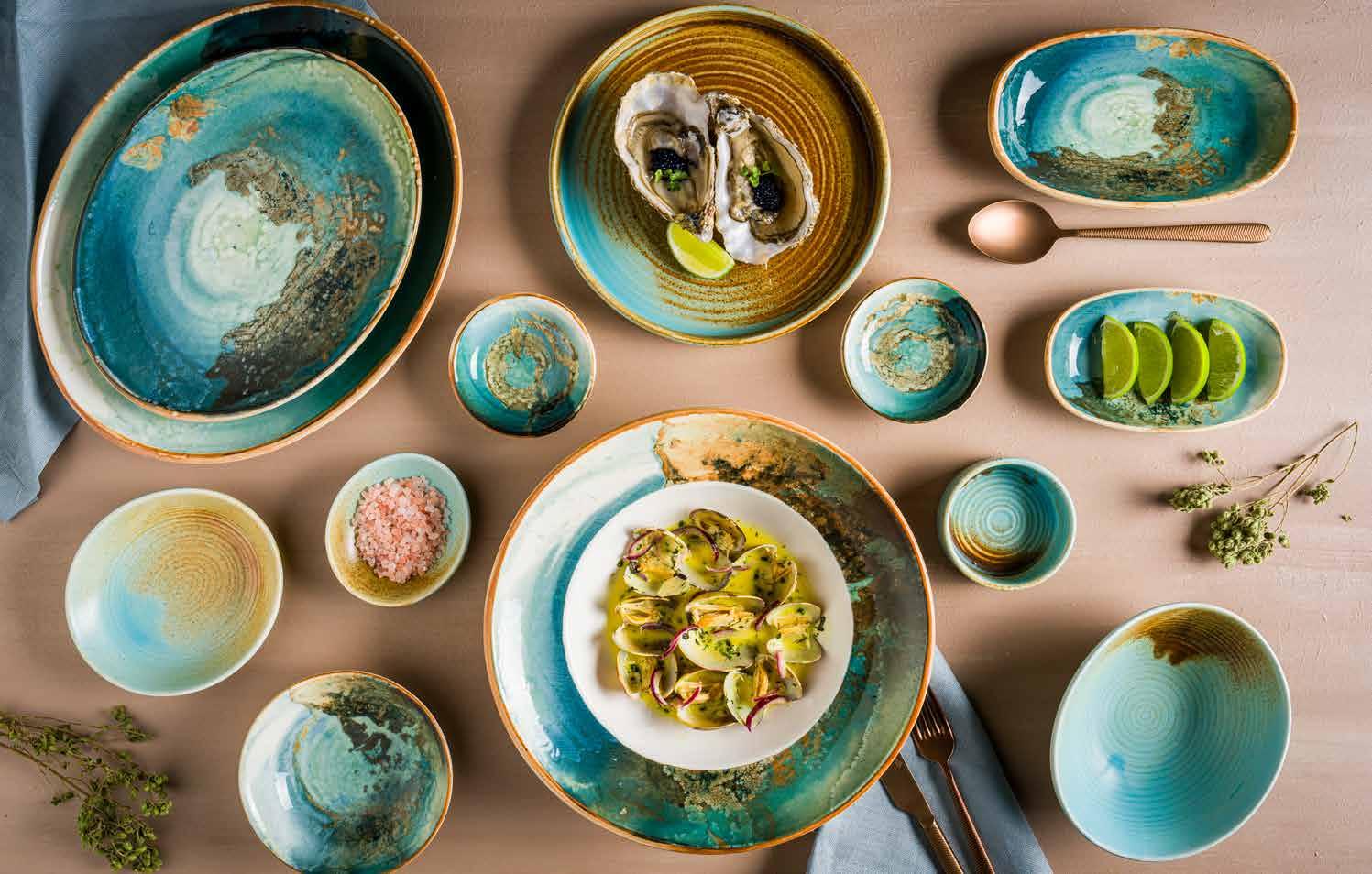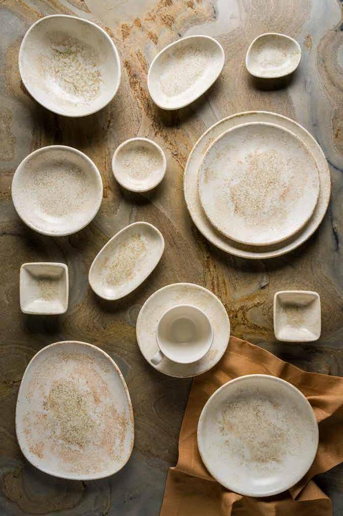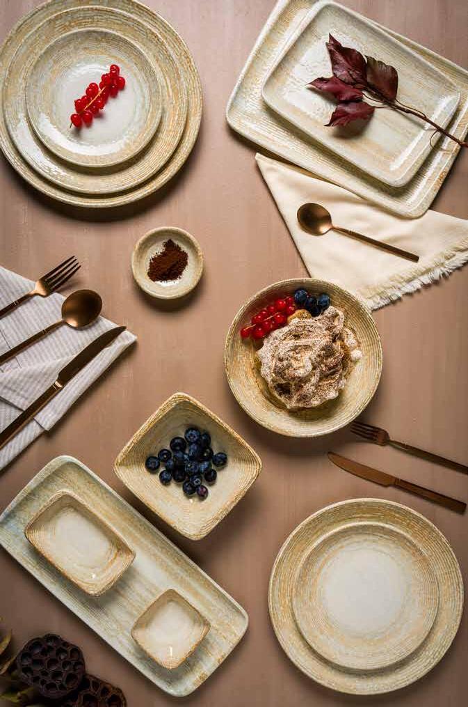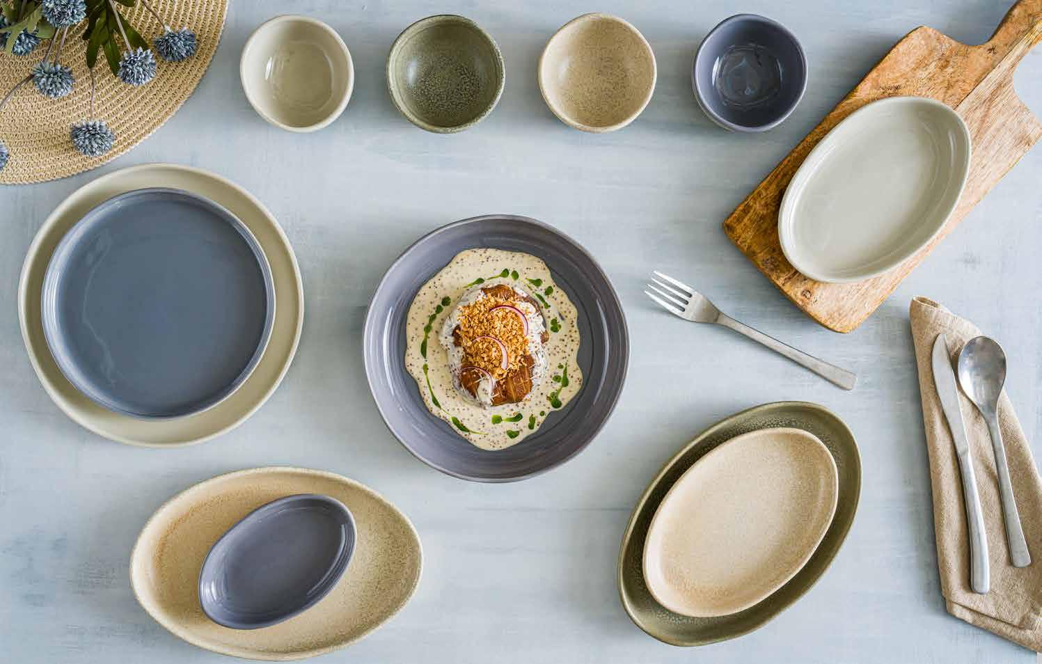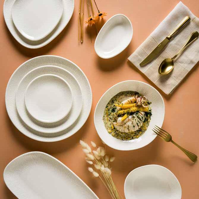 Tone collection takes its name from the melody of the Mediterranean coast. The collection symbolizes the gentle lapping of the waves on the shore and the movement of the sea with the curves in its form. Its organic form reflects the elegance and originality of a seashell. Tone is not only inspired by nature but also takes an eco-friendly approach by using less energy and carbon emissions in its production. The collection has the feel of a ceramic workshop and is more durable than porcelain products, promising a visually and functionally satisfying experience, especially for boutique and fine dine restaurants.