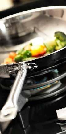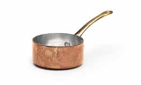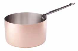 rostfritt stål. De förtennade pannorna är mycket sköra, använd därför alltid plast eller träredskap. De rostfria pannorna tål stålredskap och har en längre livslängd. Putsa koppar utsida med kopparputs.