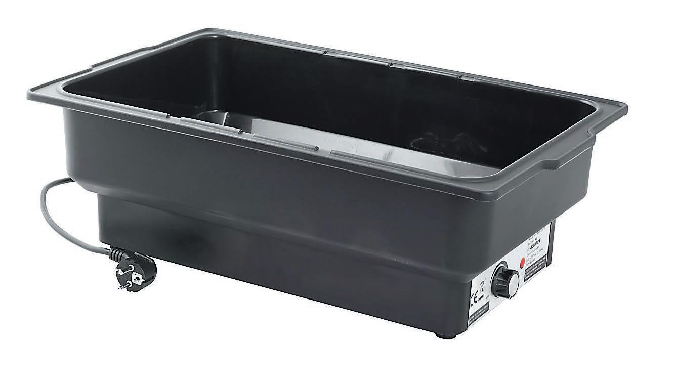 Spegelblank ram samt lock i rostfritt stål. Polypropenbalja med inbyggda element. Termostatvred samt on/off knapp. Inkl 1 st kantin GN 1/1-100 mm samt lockhållare.