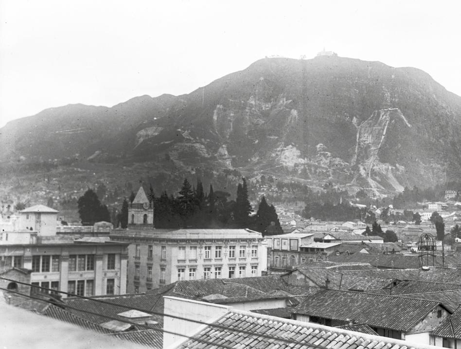 PANORÁMICA DEL NORTE DE BOGOTÁ DONDE SE OBSERVAN LOS TEJADOS DE LAS NIEVES. CA. 1900. ARCHIVO CENTRAL E HISTÓRICO DE LA UNIVERSIDAD NACIONAL DE COLOMBIA, SEDE BOGOTÁ. FONDO ERNST RÖTHLISBERGER. CAJA 1. CARPETA 3. ÁLBUM FOTOGRÁFICO