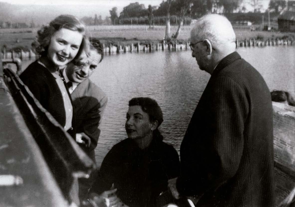 González Tuñón, quien ayudó a Neruda en la creación de la alianza antifascista, pasea aquí con Blanca MacFadsen y Nicanor Parra en el Parque Forestal y se toman esta fotografía con la Fuente Alemana de fondo.