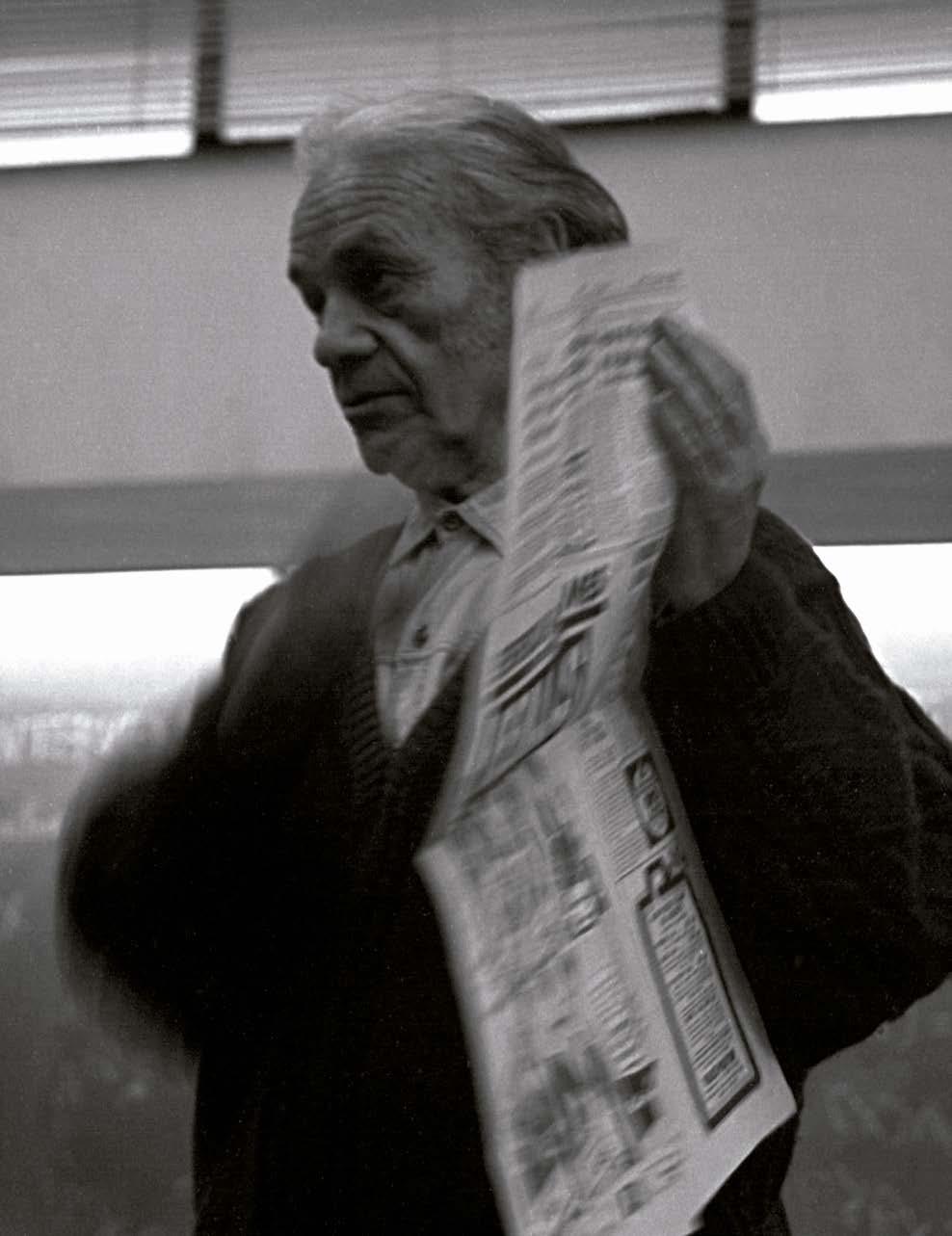 Mientras Nicanor lee unos manuscritos, Andrea Lodeiro le toma esta fotografía en el segundo piso de su casa de Las Cruces, a mediados de los noventa. Alrededor de cuatro años dura la relación con ella.
