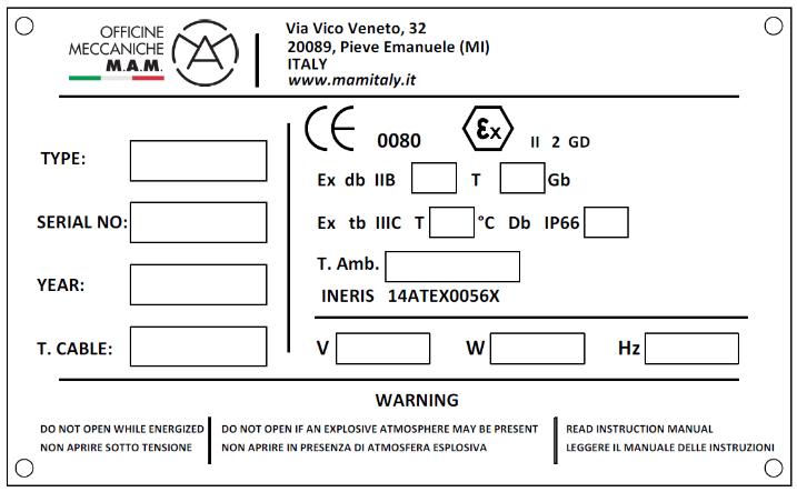 M2:thisequipmentisintendedtobede-energised in the event of an explosive atmosphere forming.