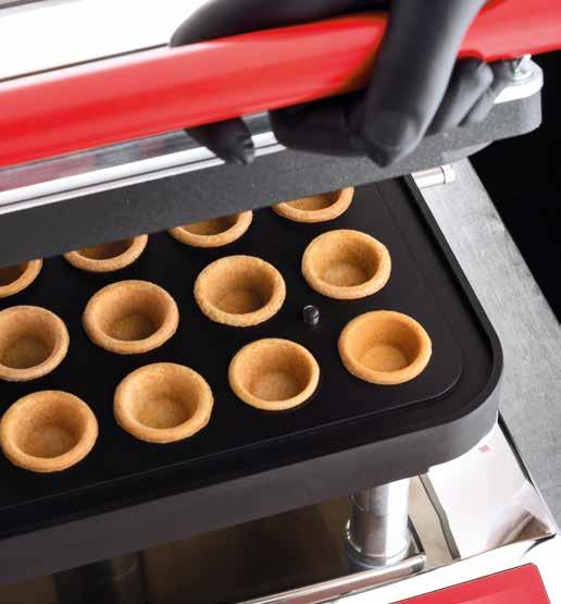 Cookmatic è la soluzione ideale per la creazione e la cottura di tartellette dolci e salate, nonché per la produzione di choux geometrici. Con una sola macchina, è possibile formare e cuocere prodotti a base di pasta frolla, brisée e pâte à choux in tempi rapidissimi, riducendo notevolmente i tempi di lavorazione e la necessità di un operatore dedicato, rispetto ai metodi tradizionali in laboratorio. Il sistema intuitivo di Cookmatic consente di realizzare una varietà di forme e misure in tempi brevi, grazie alle piastre intercambiabili. L’accoppiamento delle piastre permette di ottenere prodotti perfetti, sia in dimensioni che in cottura. La nuova interfaccia è progettata per una programmazione ancora più semplice e veloce. Facile da pulire, Cookmatic è adatta alla produzione continua per molte ore. Garanzia 2 anni.