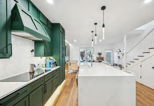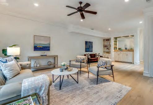 Stepping inside, the beauty of this oneof-a-kind residence continues to captivate. Jenkins Interiors truly made it a happy, mood-boosting home. Whether you’re making pancakes as a family in the refined light green chef’s kitchen or unwinding before bed in the serene, neutral-toned primary suite with custom closets, the carefully curated design elements make each moment here feel special and elevated.