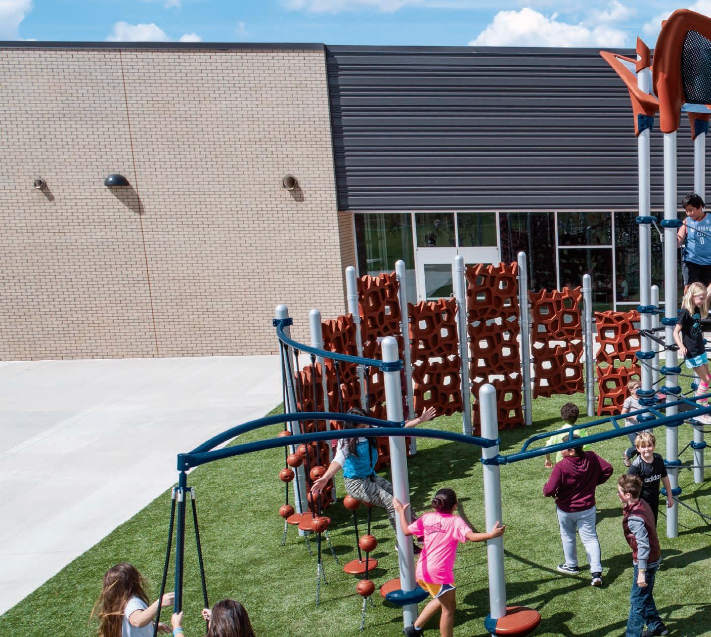 S tudies have shown that providing impressive equipment and creative surfacing designs increase physical activity levels.15 But it’s also imperative that your playground can grow with your students, offering graduated challenges that keep them engaged recess after recess, year after year.