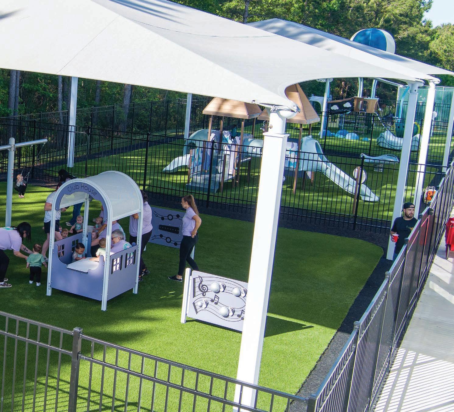 Plenty of CoolToppers® Pyramid Shades provide cooling comfort throughout the playground.