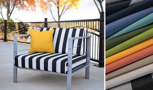 Murray: While everyone is talking about our new customizable furniture options, our replacement cushion business is attracting its fair share of attention. It’s a quiet winner. Replacement cushions are notoriously something most manufacturers don’t want to deal with because they are a pain. Now that we have access to a high-capacity cutand-sew operation in India, the game has changed. We use Sunbrella almost exclusively—buy the fabric here, ship it to India and they make the covers only. They are shipped back to us, and we stuff and finish them. The cherry on top is that with the U.S. and India capabilities combined, it’s all done with a two-week delivery window, and we can make cushions for any furniture, not just ours. Another highlight is our new protective furniture covers that our parent company has been producing for years. Now we are able to create durable custom covers