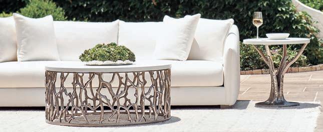 Designer side and occasional table introductions include sleek organic drum shapes of cast glass-reinforced concrete to sculptural hourglass stonecast designs. New finish colorations boast softer natural hues and shades of grays.