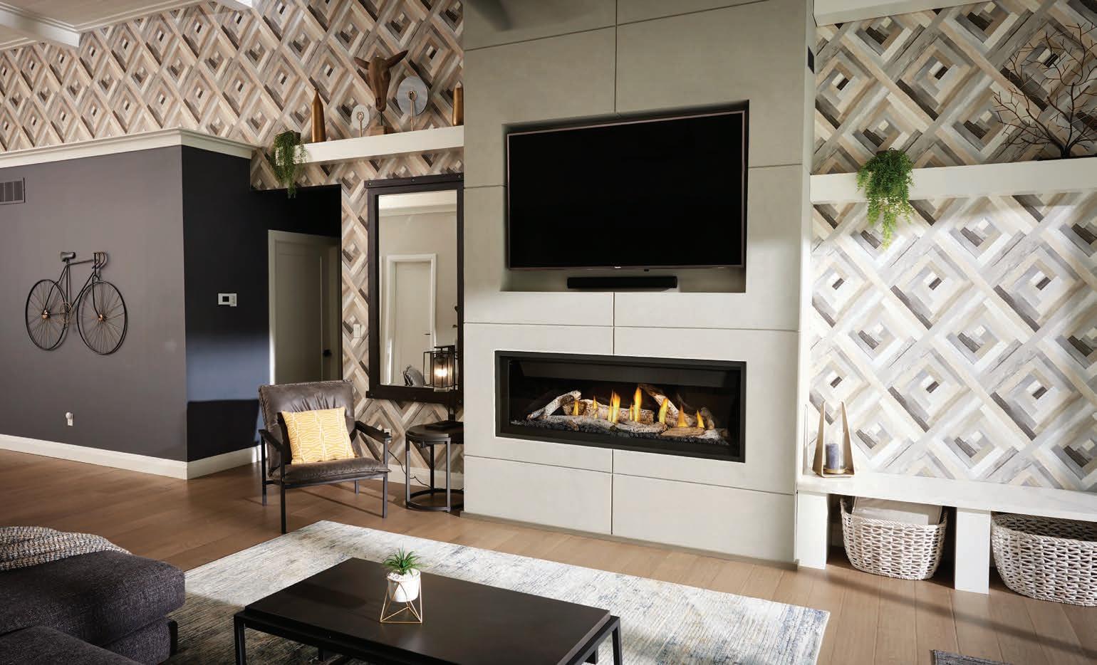 He says linear designs are growing in popularity as consumers follow design trends they’re seeing with flatscreen televisions, which are getting wider and wider as screen sizes soar. “The wider fireplaces have been growing at a similar rate as TVs,” Scott says. “It’s really nice if you can match the width of your TV with the width of your fireplace. It’s a great design look.”