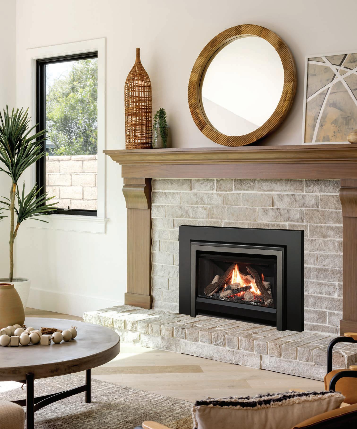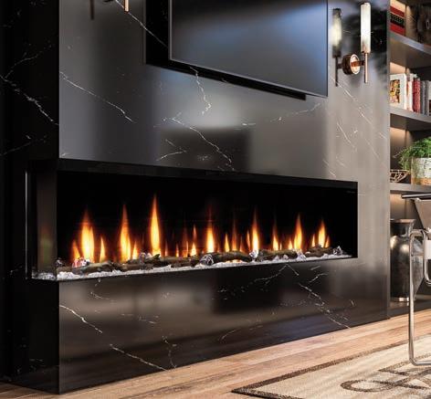 of traditional-looking gas fireplaces called the Elevation series. Scott says the new models have a deep firebox, a large viewing area, and realistic logs that deliver an impressive fire display. “We think this will be especially popular in homes with more traditional designs,” he says. “It offers lots of warmth and ambiance because of its large viewing area.”