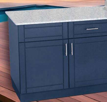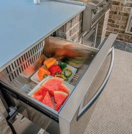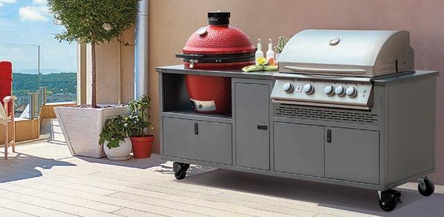 This 85” x 29” x 36” cart accepts one ceramic grill and one gas grill up to 36’’ wide. It sits on four heavy-duty casters all with swivels and two front locking. The Combo Cart has a removable back panel to access the LP tank, as well as a wastebasket pullout and large drawer for storage. Contact: (260) 593-1740 or www.rockruncabinetry.com.