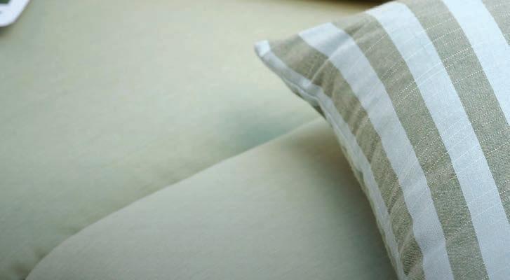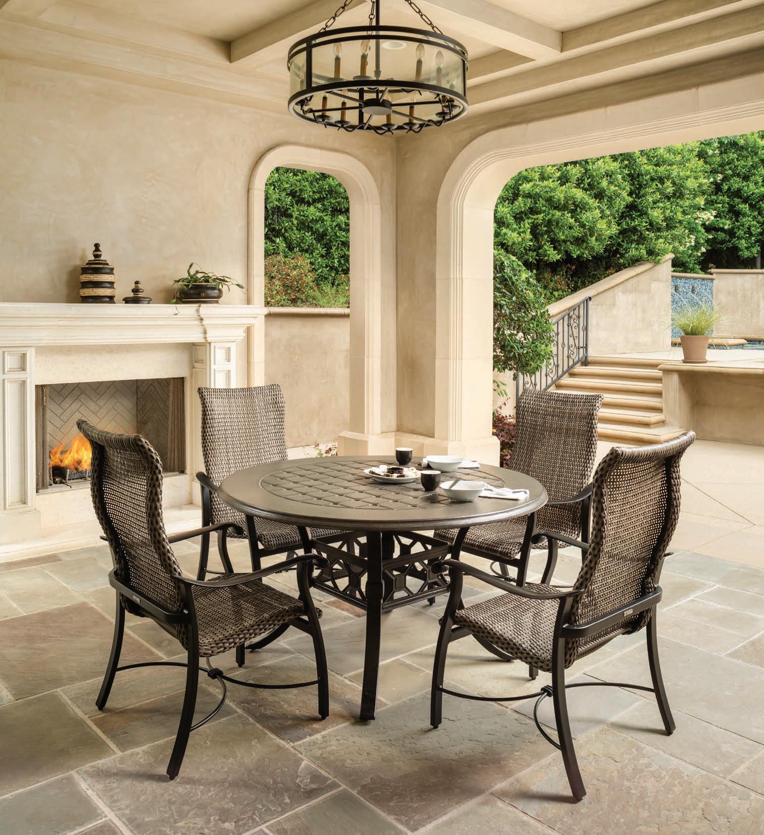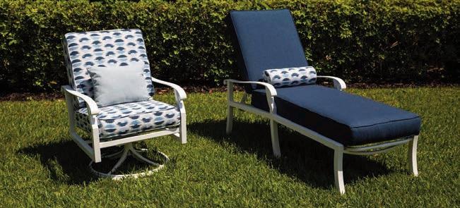 Textured geometrics with pattern depth deliver big style and durability. Twitchell’s Classic and crisp neutrals pair nicely with contemporary pieces with prints or solids. Textilene, the original all-weather fabric, is scientifically enhanced to remain vibrant, resist mildew, and withstand wear and tear. Contact: (800) 633-7550 or www.twitchellcorp.com.