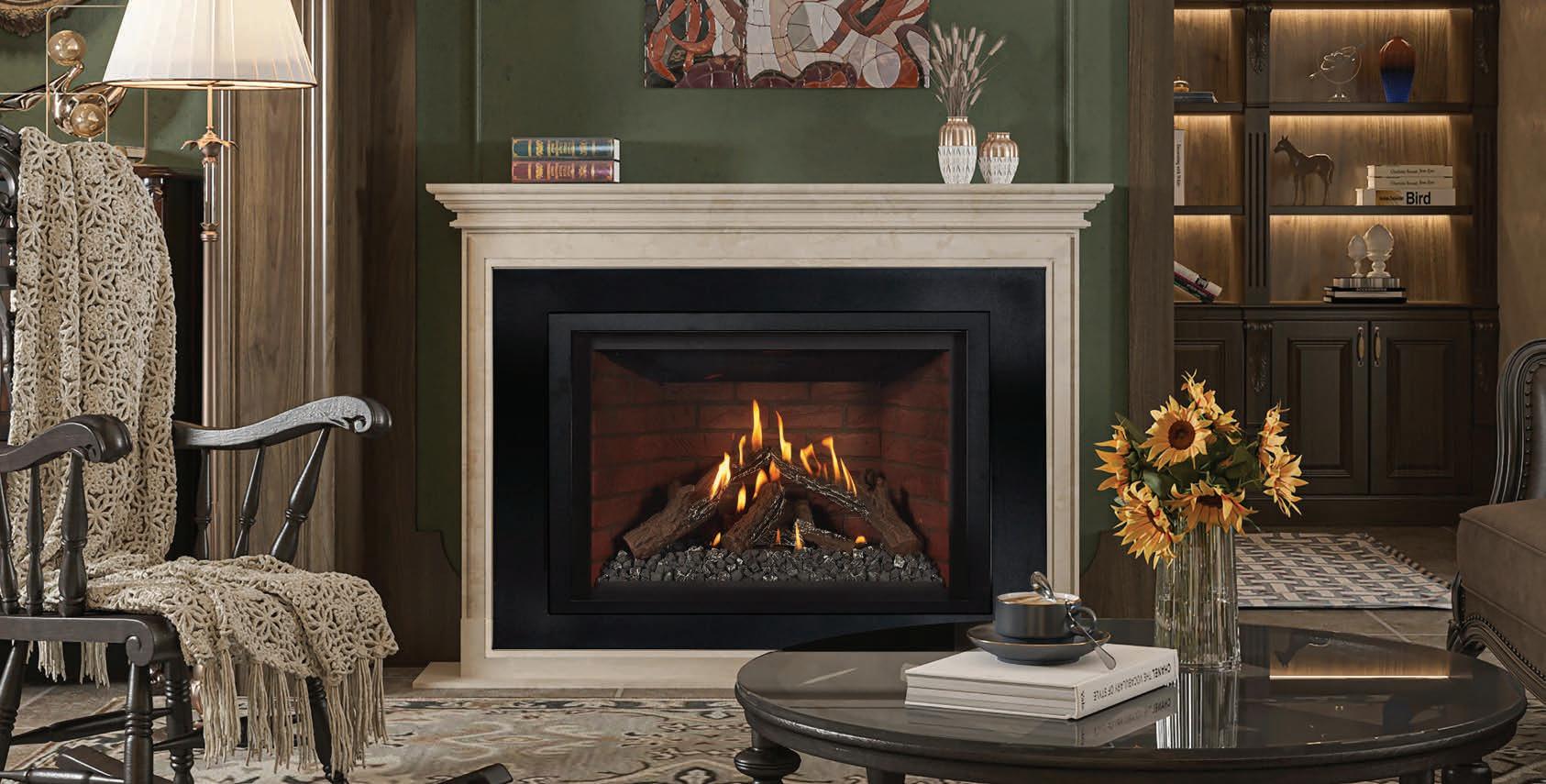 Structured as a large-format gas fireplace, the H6 zero-clearance firebox design features tapered sides and a shallow depth for smooth installation into a variety of applications. Valor’s impressive secondary heat exchanger circulates warm air naturally through convection. In addition, the birch, driftwood, and traditional log sets and V-Class burner system are designed to project radiant warmth to objects in your living space, creating steady, even heat. Contact: (800) 468-2567 or www.valorfireplaces.com.