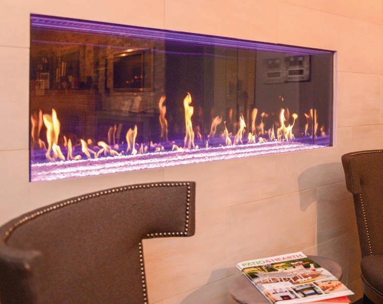 Another brand that F&C does a large portion of business with is Dimplex, which recently introduced new Optimyst units. The Optimyst Linear combines Dimplex’s patented water vapor technology with LED lighting to realistically imitate flames and smoke for a stunning display. Because the flames do not generate heat, the cool-to-the-touch glass is also safe for everyone. “It’s a really nice touch to their existing Optimyst unit, and this one offers the LED changing lights, which we’ve seen is going to be a big request in our area,” Loar says.