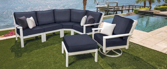 Whether the outdoor space is large or small, Windward’s Sanibel Deep Seating collection showcases footprints ranging from traditional deep seating to infinite sectional combinations. This solid MGP collection was thoughtfully designed with the concept of crossing durability and style. The collection is 100% manufactured in the USA with its precision CNC-cut MGP back, sculpted arms, full poly base and ultra comfortable seat support and cushions. Sienna’s versatility is endless. Contact: (914) 213-5869 or www.windwarddesigngroup.com.