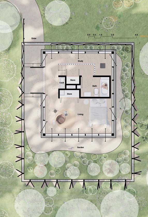 In this studio students will be introduced to basic aspects of building and building codes, and conventions for architectural representation (scale, notation, and graphic methods). Students will receive an essential introduction to contemporary architectural methods and techniques for drawing, 3D modeling, digital fabrication, and nal presentations. Digital tools and techniques will be further expanded from the Digi-Blast Course, and will focus on a broader set of tools in Rhinoceros 3D, Adobe Suite, and V-Ray.