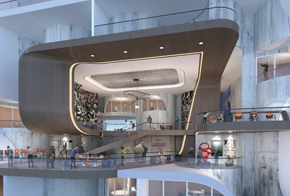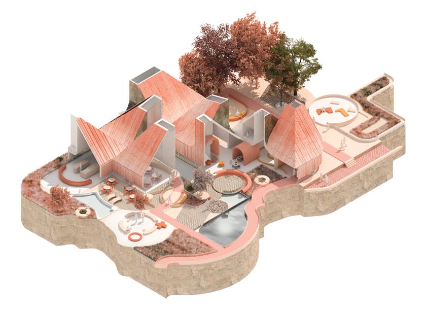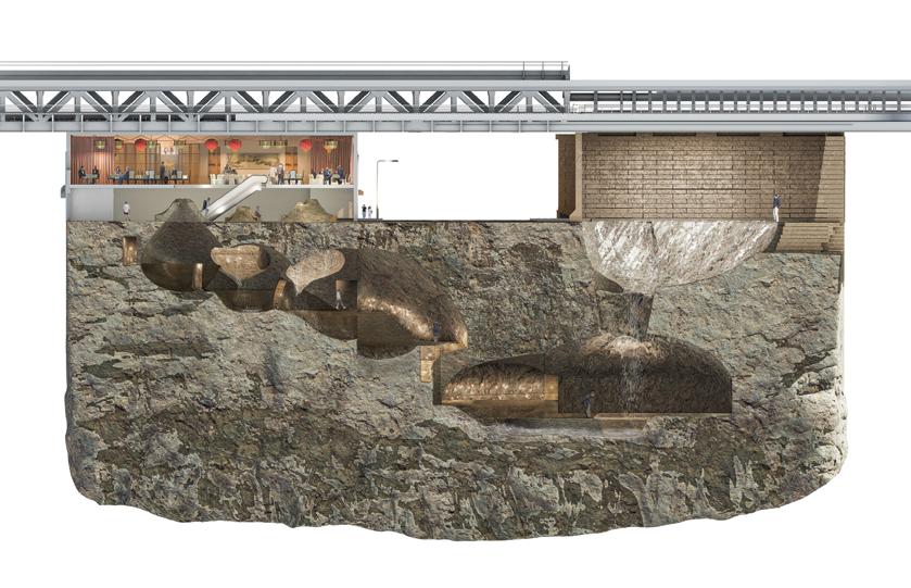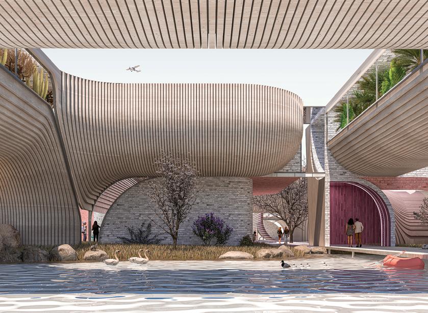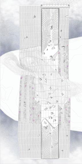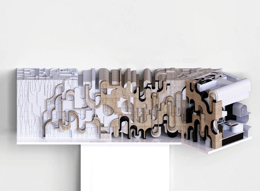 This project started by looking at the artworks of Paul Juno, a Los Angeles multimedia artist who creates oil and agate paintings. At the beginning of the design phase this project looked at the natural rhythms contained in the ow, lution, breaking, and foaming of material processes as they mixed together. Furthermore the design also explores the architectural translation of dissolving, ridges, spatial tunnels, waves, and bubbles.