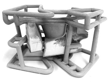 The studio methodology consists of three feedback phases: the generative diagram, prototyping / iterative modeling, and formal/spatial animations. The rst exercise starts with the generative diagram phase, which operates as the abstract machine of assembly. The prototyping and iterative modeling phase is a method of rapid and recursive generation of form and materials experiments. The nal phase experiments with new mediums of digital representation. The studio interrogated new mediums of contingency through hybrid digital and material experimentation and behavioral systems analysis.
