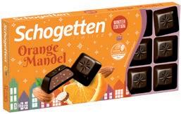 Schogetten – immer ein Genuss, Stück für Stück. Die neue Limited Edition bringt mit dem Geschmack nach Orangen, Mandeln, weißem Lebkuchen, Nüssen und Ahornsirup schon eine Einstimmung auf einen kuscheligen Herbst und Winter.