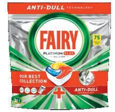 Die Spülmaschinentabs von Fairy für die Reinigung von hartnäckigen Lebensmitteln lassen Ihr Geschirr wie neu glänzen. Sie entfernen, dank ihrer Anti-Schleier-Technologie, Schleier, um den ursprünglichen Glanz Ihres Geschirrs wiederherzustellen.