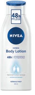 NIVEA CREME div. Sorten pro 150 ml – 250 ml Dose 100 ml=1.56 – 2.60 3.99/4.39 3.89 -11 % bis NIVEA DEO ROLL-ON div. Sorten pro 50 ml od. DEO SPRAY div. Sorten pro 150 ml Dose 100 ml=1.57/4.70 2.69 2.35 -12% 4.79 4.15 -13% NIVEA BODY LOTION div. Sorten pro Flasche 100 ml=1.04 400 ml NurkurzeZei t 3.89 NurkurzeZei t 3.99 NIVEA DUSCHE* div. Sorten pro Flasche 100 ml=0.77 500 ml NIVEA KIDS 2IN1 DUSCHE & SHAMPOO* div. Sorten pro Flasche 100 ml=0.88 500 ml NurkurzeZei t 4.39 NIVEA ANTI-FALTEN* div. Sorten pro 50 ml Packung 100 ml=12.90