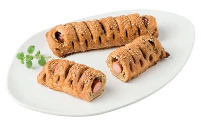 JAUSEN-MAXI zarter Plunderteig mit Käsekrainer gefüllt, bestreut mit Sesam und Leinsamen pro 110 g Stück 100 g=1.36