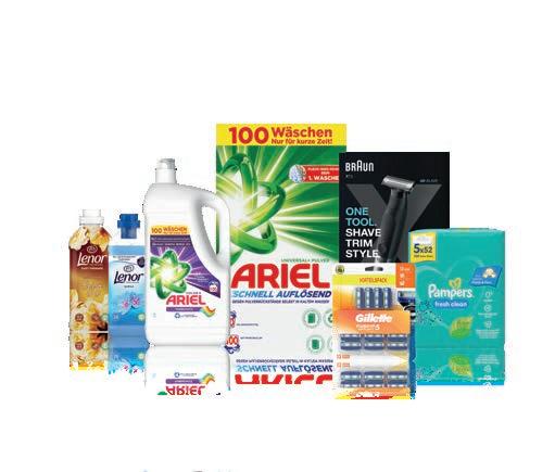 1Mit jedem Kauf eines Produktes der Marken Ariel, Braun, Lenor, Pampers und Gillette bei PENNY im Zeitraum vom 11.09. bis 16.09.2023 spendet P&G bis zu einem Gesamtwert von 5.000 € jeweils 0,01 € an die Caritas Lerncafés in Österreich. PAMPERS FEUCHTTÜCHER FRESH CLEAN od. SENSITIVE pro Packung 1 Blatt=0.03 19.99 24.99 ARIEL PULVER od. FLÜSSIG div. Sorten, 100 WG ALL-IN-1 PODS COLOR 100 WG pro Gebinde 1 WG=0.20 LENOR WEICHSPÜLER* div. Sorten 32/38 WG pro Flasche 1 WG=0.07/0.08 NurkurzeZei t 2.29 5.96/7.29 5.49 -24 % NurkurzeZei t 22.99 ALL IN ONE BARTTRIMMER, BODYGROOMER UND RASIERER* 4D-Klingentechnologie für hautschonende Rasur Rasieren und Trimmen in beide Richtungen schnell und einfach mit Präzision inkl. 6 Aufsätze pro Packung bis