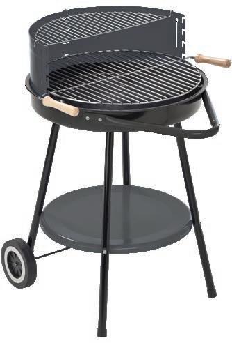 höhenverstellbarer Grillrost aus verchromtem Stahl mit praktischer Ablagefläche und 2 Transporträdern