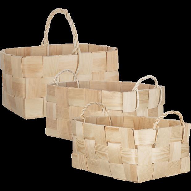 Mänty Splint Basket 19 x 14 x 6 cm, Valkea Mug 0,3 l and Timjami Serving Board 0 30 cm. Tähtinen Pot Coaster 24 cm.